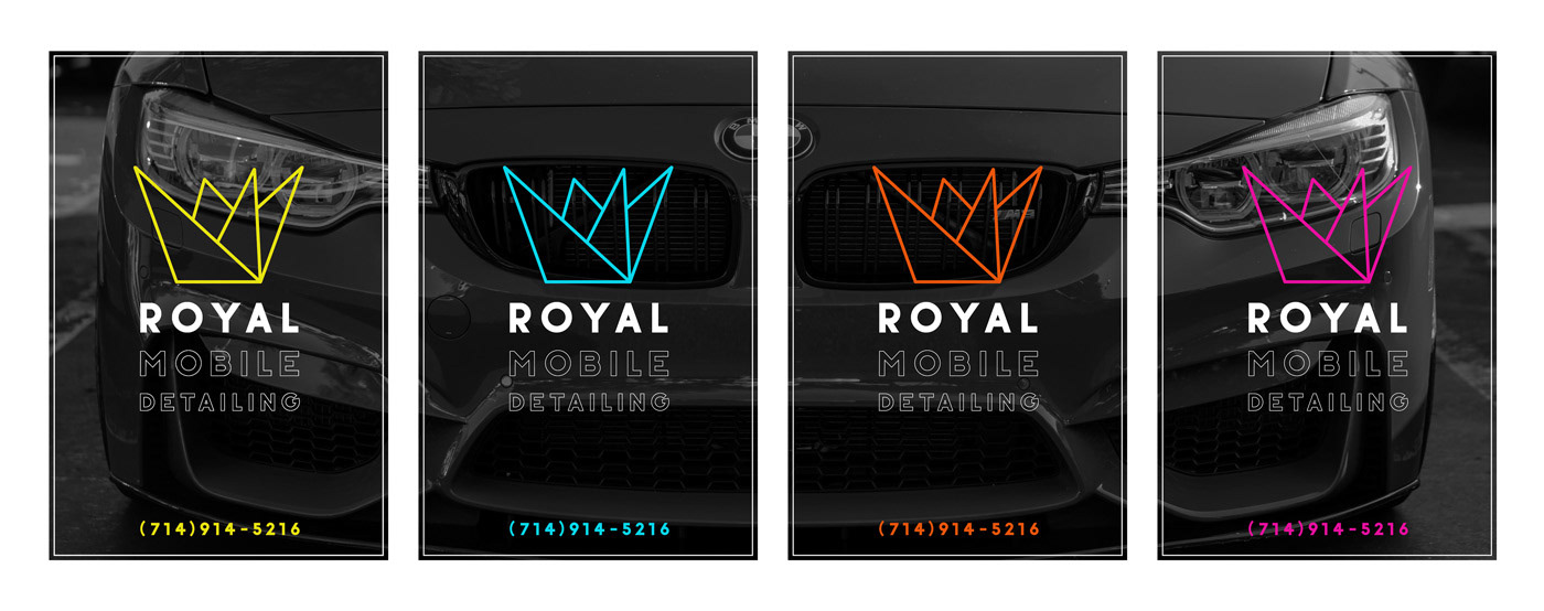 A fun little project creating a simple, but recognizable logo for a small car detailing company. 4 different 4x6" window display flyers created for marketing purposes.