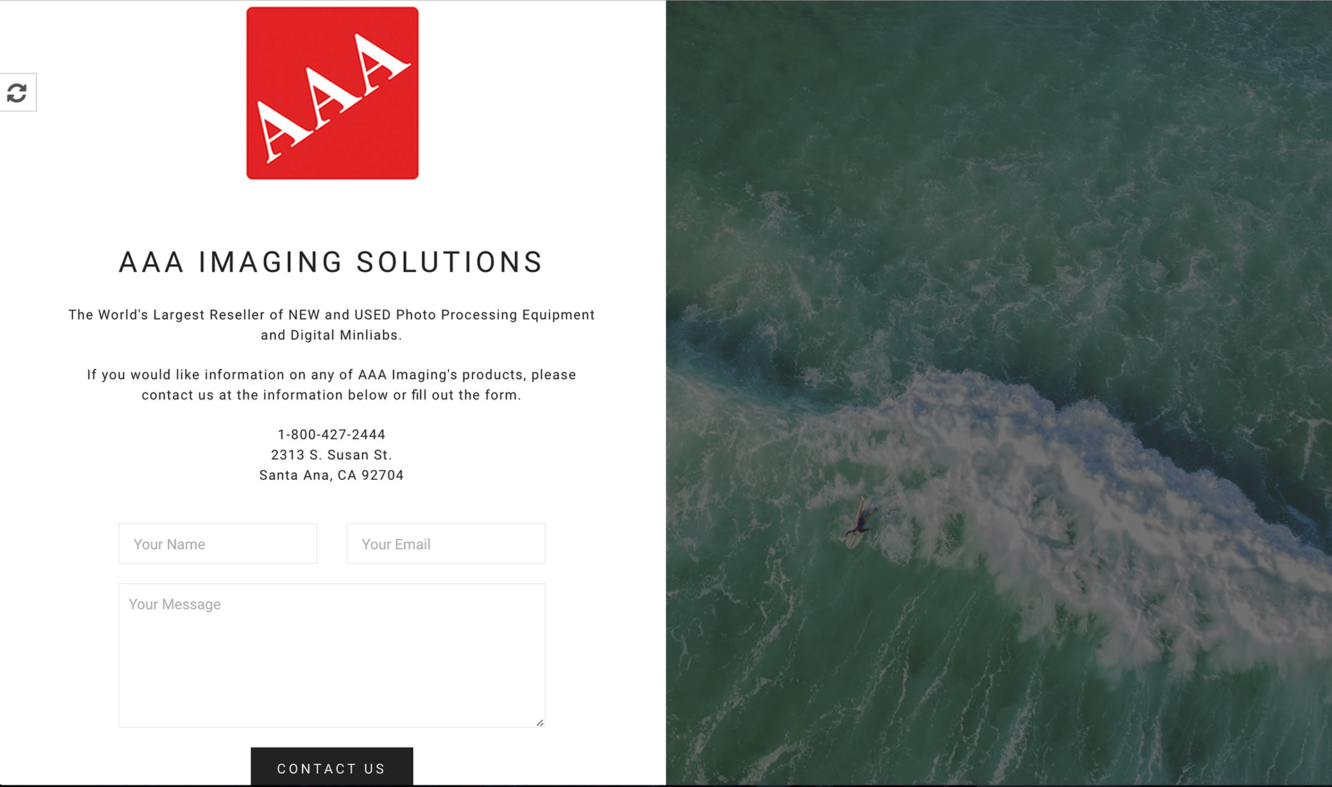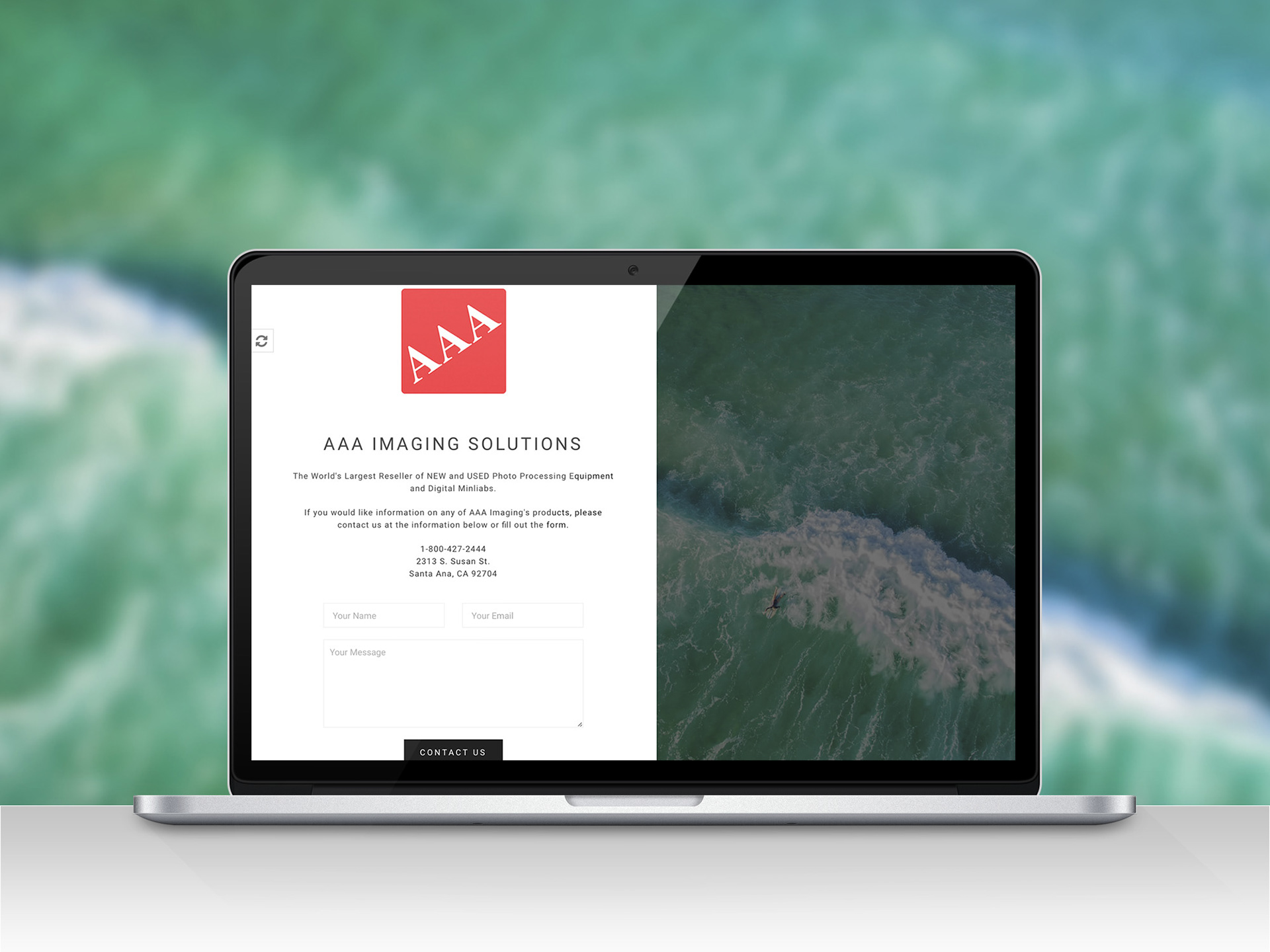 A minimalist approach to a Splash Page for the company. A logo, an aerial shot and a contact form. That is it!