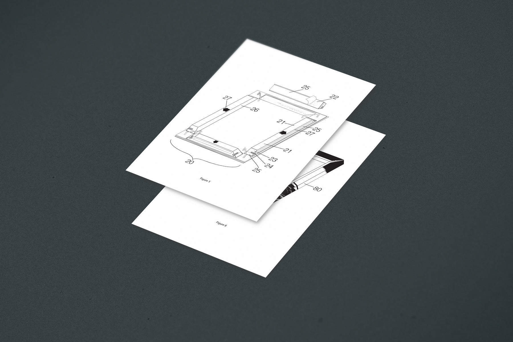 A series of sketches drawn for a picture framing process. These sketches take you through the process of attaching a printed photo on canvas and stretching it around 4 wood bars.